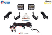 Features Bolt-on fitment compatible with Jeep JL Wrangler 2018+ Ultra-high intensity, with custom-engineered TIR optics Brilliant amber backlight color, for additional accent Torture-tested, heavy-duty construction Control through factory aux switch bank using the included harness Assembled in USA Overview Perfect Fitment. The Bumper LED Pod Light Kit compatible with Jeep JL Wrangler 2018+ from Diode Dynamics allows you to mount two SS5 LED pods on the factory bumper. These application-specific brackets were CAD-designed to bolt into place using factory mounting points. No cutting or drilling required! Designed for Performance. Featuring the highest output intensity of any 5-inch LED pod on the market, these lamps have been designed for maximum functionality, with patented technology and custom-engineered TIR optics, all in a durable package. Selectable Backlight. The Stage Series 5inch LED Pods included in the White kit feature a selectable backlight with eight different color options, perfect for an extra styling accent, or for more visibility when you’re not using the main beam. Selecting your backlight color is easy - simply alternate the power on and off. There’s no complicated programming with a controller! The SS5's backlight fully illuminates the TIR optic, providing unique accent lighting that you won't find on other LED pods. NOTE: Due to the yellow lens, the Yellow kit is only available with an Amber backlight color.