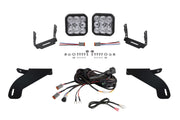 Features Bolt-on fitment compatible with Ford F-150 2021-2023 Ultra-high intensity, with custom-engineered TIR optics Selectable backlight color, with eight color options Torture-tested, heavy-duty construction Control through factory aux switch bank using the included harness Assembled in USA Overview Perfect Fitment. The Bumper LED Pod Light Kit compatible with Ford F-150 2021-2023 from Diode Dynamics allows you to mount two SS5 LED pods on the factory bumper. These application-specific brackets were CAD-designed to bolt into place using factory mounting points. Designed for Performance. Featuring the highest output intensity of any 5-inch LED pod on the market, these lamps have been designed for maximum functionality, with patented technology and custom-engineered TIR optics, all in a durable package. Selectable Backlight. The Stage Series 5inch LED Pods included in the White kit feature a selectable backlight with eight different color options, perfect for an extra styling accent, or for more visibility when you’re not using the main beam. Selecting your backlight color is easy - simply alternate the power on and off. There’s no complicated programming with a controller! The SS5's backlight fully illuminates the TIR optic, providing unique accent lighting that you won't find on other LED pods. NOTE: Due to the yellow lens, the Yellow kit is only available with an Amber backlight color. NOTE: The existing mounting points must be drilled out larger in order to secure the bracket.