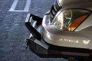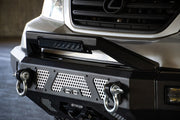 This overland-style winch front bumper for the GX 470 was designed to provide protection to the front end of your Lexus. A winch can be mounted securely within the bumper, and accessed through two openings at the top of the bumper. At the front of the bumper are two heavily reinforced clevis mounts that can take ?-inch d-rings.?Like all MTO (Made To Overland) Series bumpers, it features an optional Bull Bar that can mount a 13-inch single row LED light bar. Additionally, a 3-inch LED pod light can be mounted in each wing of the bumper. The perforated aluminum mesh accent plates can be removed and painted if desired.?There is also a dual row 20 in light bar mount behind the center mesh panel.