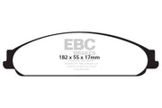 Designed for premium street driving offering better brake effect up to 600-degrees C (1100-degrees F). EBC Greenstuff has a high initial brake effect and gives drivers confidence from first application of the brake pedal. There is no such thing as a NO DUST pad. The very nature of how a brake works requires that some dust be generated to avoid rotor vibration (shimmying). The EBC pad creates less dust and dust is more easily washed off than most. All pads create more dust as they are bedding in especially if rotors are worn. Nominal friction coefficient 0.55. For heavier faster cars and vehicles above 200bhp we strongly recommend Redstuff which DOES offer much less dust.