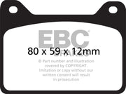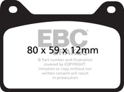 EBC Yellowstuff is an aramid fibre based brake compound with high brake effect form cold and is possibly one of the first ever compounds that can be used for STREET AND TRACK DRIVING. These pads do not require warm up but do get even stronger under the heat of hard driving. These are not a low dust pad and if your desire is for a low dust premium street use pad, you should consider EBC Redstuff.When considering full race use, Yellowstuff has been a strong favourite, having been used for two years in the Swedish Camaro Cup and at numerous other race events where a stock caliper system is fitted.It is also the choice of 90-percent of the Mazda MX5 Miata competitors in the UK race series and has an unblemished record as rotor friendly track pad for vehicles up to 2000 lbs weight or 200 BHP.In the USA the SCCA and NASA drivershave been testing Yellowstuff with feedback and good reports POURING in from a 543 test driver major market proving event with these groups. Read that figure again 543 test drivers.There is no guesswork here.