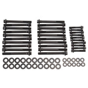 The Edelbrock #8595 bolt kit contain a complete set of the highest quality head bolts and hardened washers available. Cold-formed to ensure molecular integrity and heat treated prior to thread rolling and machining. Reduced diameter bolt heads eliminate the need for valve train removal to facilitate cylinder head re-torqueing. Hardened and parallel-ground washers are included. Rated at 170,000 p.s.i.
