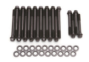 The Edelbrock #8558 bolt kit contain a complete set of the highest quality head bolts and hardened washers available. Cold-formed to ensure molecular integrity and heat treated prior to thread rolling and machining. Reduced diameter bolt heads eliminate the need for valve train removal to facilitate cylinder head re-torqueing. Hardened and parallel-ground washers are included. Rated at 170,000 p.s.i.