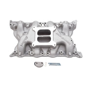 Edelbrock part #2750 Performer 351-2V intake manifold is designed for street 351C and accepts 4V carb, however it's designed to improve the performance of engines that came stock with 2V carb and heads. Manifold will fit Boss 302 or accept stock Motorcraft spread-bore carb. End-seal flange width measures 6-31/32". Edelbrock's Patented Dual-plane, low-rise design with a 180-degree firing order greatly improves torque over a wide rpm range for excellent throttle response from off-idle through 5500rpm. This Performer intake manifold is ideal for passenger cars, trucks, 4x4s, tow vehicles and RVs.