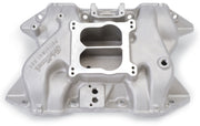 Edelbrock part #2186 Performer 383 intake manifold is designed for street 361-383-400 c.i.d. Chrysler V8's that measure 7.75" across block. May be used with OEM or aftermarket carbs. Edelbrock's Patented Dual-plane, low-rise design with a 180-degree firing order greatly improves torque over a wide rpm range for excellent throttle response from off-idle through 5500rpm. This Performer intake manifold is ideal for passenger cars, trucks, 4x4s, tow vehicles and RVs.