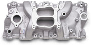 Edelbrock part #2104 Performer intake manifold is designed for street 262-400 c.i.d. Chevy V8's that have heads with canted center bolt holes, 1987-1995. Edelbrock's Patented Dual-plane, low-rise design with a 180-degree firing order greatly improves torque over a wide rpm range for excellent throttle response. The Performer intake manifolds are ideal for passenger cars, trucks, 4x4s, tow vehicles and RVs. For 1987-95 stock aluminum heads use #2101.