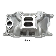 Edelbrock part #7176 Performer RPM intake manifold is designed for 340-360 c.i.d. Chrysler V8's and 318 c.i.d. engines with 340-360 cylinder heads. Latest technology in dual-plane design results in both excellent low-rpm torque and outstanding high rpm horsepower. Recommended for high-performance'street, strip and fresh water marine applications. Accepts 1975 and earlier waterneck only. Will not accept stock Thermo-Quad carburetor. Will not fit 1992 and later Magnum engines. Match with Performer RPM heads #60779 for maximum performance.