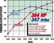 Edelbrock Rollin' Thunder Camshaft #2221 is designed for 289-302 Ford V8 engines and produces optimum torque from the low-end to the mid-range. Rollin' Thunder camshafts match with Performer manifolds for vehicles operating from off-idle to 5500 rpm. They are smooth idling cams for daily drivers, trucks, vans, RVs and 4x4s. You can expect a major improvement in throttle response and torque. In the manifold section you'll find torque graphs showing the power gains from Performer manifolds and Performer-Plus cams. All camshafts include flat tappet lifters (except for cams designed for use with stock roller lifters), assembly lube and instructions. This cam produced 384HP and 347 Ft Lbs of Torque when paired with a Pro-Flo 2 system #35210 and Performer RPM cylinder heads #60225. Must use a high stall torque converter and stock ratio rocker arms only. Camshaft specifications: - Intake duration: 227 Degrees - Exhaust duration: 234 Degrees - Intake lift: .520" - Exhaust lift: .520" - Lobe separation: 112 Degree - Intake Center Line: 107 Degree - Vacuum: 12"