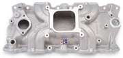 Edelbrock part #5001 Torker II intake manifold is designed for 1955-86 high-performance's street 262-400 c.i.d. small-block Chevys. This Torker manifold is a singe plane low rise intake that's great for high performance applications that have limited hood clearance. The manifold has an exhaust crossover for easy cold weather warm-ups, but no provisions for exhaust heated chokes or EGR. Customers will need either electric or manual choke carburetors. Accepts late-model water neck, air-conditioning, alternator and H.E.I. Intake manifold will fit Corvette and '87 and later stock heads. Will not fit '87 and later cast iron heads and will not cover port openings of Chevrolet Bowtie or LT1 heads. Not for heavy vehicles (trucks, vans etc.); use Performer EPS #2701.