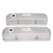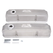 Edelbrock part #41629 Classic Series Valve Covers are designed for Ford FE V8 1958-1976 applications. Edelbrock first made these aluminum valve covers in the late '50s and they're still a classic. Made of heavy-gauge sand-cast aluminum, Overall height is measured from base to top at the highest point. Edelbrock classic valve covers can be machined to accept breathers if desired. May not clear some power brake boosters on Ford FE applications.