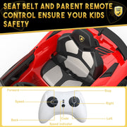 The Electric 12V Kids Ride-On Sports Car with LED Remote Control is the ultimate toy for adventure-seeking children. This officially licensed Lamborghini ride-on car is designed to provide a thrilling and realistic driving experience. With its LED headlights, horn, and engine sounds, your little one will feel like they're driving a real Lamborghini. The hydraulic powered doors swing open just like the doors of a genuine sports car, adding to the authenticity of the ride.This rc ride on car offers two driving modes to suit your child's age and skill level. The parental remote control allows parents to take control of the car, with three different speeds to choose from. This is perfect for younger children who may need a helping hand. As they grow older and gain more confidence, they can operate the car themselves using the foot pedal and steering wheel, with two speeds to select from.But the fun doesn't stop there! This battery-powered car is equipped with cool lights and sounds to enhance the driving experience. It features built-in music and stories, as well as Bluetooth, AUX cord, TF port, and USB port, so your child can play their own music while cruising around. The front and rear LED lights add a touch of style and make the car even more eye-catching.Performance is key, and this ride-on car doesn't disappoint. Powered by two powerful 25W motors and a 12V rechargeable battery, your child can enjoy up to 1-2 hours of safe and thrilling ride-on fun. With speeds ranging from 1.86 to 3.12mph, they'll feel like they're zooming around in their very own sports car.Safety is always a top priority, and this ride-on car is made with safe materials. It is certificated with ASTM and CPSIA, ensuring that it meets the highest safety standards. Not only will your child have a blast with this ride-on car, but it can also enhance the parent-child relationship and create lasting memories.The Electric 12V Kids Ride-On Sports Car with LED Remote Control is the perfect gift for any child. Whether it's for a birthday or Christmas, this ride-on car is sure to bring joy and excitement. With its sleek design and thrilling features, it will be a hit with boys and girls alike.Additional Specifications:- Age Level: 3-4 Years, 4-7 Years- Brand: Unbranded- Item Dimensions LxWxH: 42 x 25 x 16 inches- Material: Iron- Theme: Ride on Car