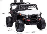 The Electric 2-Seater Jeep for Kids with MP3 and LED Lights - 12V Battery Powered for Safe Fun! Get ready for an adventure with the Electric 2-Seater Jeep for Kids with MP3 and LED Lights! This ride-on car is perfect for little explorers aged 3-8 years old, with a maximum weight capacity of 66 lbs. With its realistic UTV design and exciting features, your child will have a blast cruising around in this battery-powered rc ride on car. Key Features: Manual & Parental Control: The parent can control the tractor to enjoy the happiness time with the child. The child can also operate it by themselves using the foot pedal to control ideal speeds. There are 2 speeds for manual control and 3 speeds from 1.8-3.7 mph to operate by remote control. Safety Guarantee: This kids ride-on car is certified by ASTM F963 CPSIA CPC, ensuring your child's safety. It features a slow start function, parental remote control priority, adjustable seat belt, lockable doors, and spring suspension wheels to prevent your child from falling off or any other danger. Build-in Fun: The ride-on vehicle comes already assembled with an MP3 player, USB port, AUX input, FM radio, and bright LED headlights to provide even more fun for your child. The rear storage bin allows your kids to take their toys along with them on their adventures. Realistic UTV Design: With bright LED headlights, control pedal, detachable trailer (optional), realistic engine sound and horn, and a rechargeable battery with 2*12V motor, this ride-on car offers an authentic and immersive experience. Rechargeable Battery: Equipped with a 12V 4.5AH battery, this electric vehicle has a charge time of 8-12 hours. Its overall dimensions are 39.17"L x 25.98"W x 27.95"H. Product Specifications: Brand: Kch1688 Age Level: 8-11 Years Year: 2021 Theme: Car Custom Bundle: No Character Family: Kids Material: PP/Iron Dimension: 42.91" X 28.34" X 25.19" Weight Capacity: 66 lbs Charge Time: 8-12 hours Speed: 1.8-3.7 mph Type: Ride on Car The Electric 2-Seater Jeep for Kids with MP3 and LED Lights is designed for safe and exciting playtime. The spacious seat allows for free movement and comfortable driving, while the doors with safety locks, adjustable seat belt, parental remote control, and suspension system ensure your child's safety while driving. The UTV is also equipped with an MP3 player, AUX, USB port, FM radio, bright LED headlights, and Bluetooth connectivity, providing your children with a fun and entertaining experience. The wear-resistant tires with spring suspension and slow start technology improve stability and protect your kids, eliminating the hassle of inflating. Plus, the rear storage space allows your kids to bring their favorite toys along on their adventures. This electric car will make a perfect gift for your child's birthday or Christmas! Package includes: 1× Battery Powered Ride on Car 1× Remote Control 1× Charger 1× User Manual