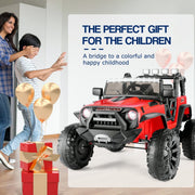 The Electric 4 Wheeler ATV Car Jeep Truck for Kids - 12V/24V Battery Powered Ride-On Toy is the perfect gift for your adventurous little ones. With its powerful motor and durable construction, this ride-on toy is designed to provide endless fun and excitement. Let's explore each variant in detail: Type 1: 12V 2x35W Electric Ride On Car ATV Quad Color options: Pink, Black, Blue, White Motor: 35W*2 Battery: 12V - 4.5AH Material: PP, Iron Net Weight: 21.6 lbs Loading Capacity: 68 lbs Overall Dimensions: 34.6" L X 18.1" W X 20.1" H Recommended for Kids: 2-8 years old Speed: Low speed of 1.5mph, high speed of 2.8mph Key start, high/low speed, USB, MP3 interface, power display, volume adjustment, slow start Charging time: 6-8 hours, Long battery life-up to 60-90 minutes (Based on child weight) Certification: ASTM /F963, FCC, CE, ROHS The ride-on ATV features advanced slow start technology for higher protection, ensuring a smooth and safe driving experience for your kids. The comfortable kids-friendly seat provides optimal comfort during their thrilling rides. With variable driving speeds and directions, your kids can easily operate the ATV like a real car. The horn sound and simulative acceleration sound buttons on the steering wheel add to the realistic driving experience. The rechargeable design allows for long hours of driving fun, and the power display reminds you to charge it in time. The ATV is equipped with wear-resistant wheels, making it suitable for any terrain. Whether your kids want to ride on grass, beach, rubber track, or cement ground, they can enjoy themselves everywhere. With its authentic appearance and various features like MP3 and USB connectivity, this ATV is sure to bring infinite fun to your kids. Let this battery-powered quad ATV accompany your kids and create cherished childhood memories. Crafted with high-quality materials and certified by ASTM /F963, it guarantees reliability and durability. Type 2: 12V 2*30W 2-Seaters Electric Ride On Truck Car Color options: Pink, Black, White, Red Recommended Age: 3-7 years Material: PP and ABS plastic, metal Battery Type: 12V 7AH Motor Type: 30W * 2 Maximum User Weight: 67 lbs Maximum Speed: 3-5 km/h (3 mph) Charging Time: 8-12 hours Run Time: 2-2.5 hours (depending on the child's weight and speed) Music Function: AUX & USB port / Bluetooth / built-in music Controller Batteries: 2 AAA batteries (not included) Overall Size: 38.5 inches (L) x 23.5 inches (W) x 26 inches (H) This electric ride-on truck car is the perfect gift for your aspiring little driver. It features a parent-child remote control mode, allowing you to control the car and enjoy the joy of being with your baby. The adjustable seat belts, bright LED headlights, lockable double doors, and impact-absorbing shock absorbers make the driving experience realistic and safe. The truck car is equipped with a 30W*2 strong motor, providing dual driving force and sufficient power. The spring suspension device ensures a comfortable and smooth ride on different terrains. With its built-in music player, AUX/USB ports, and Bluetooth connectivity, you can connect your device and play your child's favorite music or stories. The multifunctional control panel includes an oversized color LED display, speed adjustment, simulated car-style horn, music playback, and volume adjustment, adding to the driving fun. This ride-on truck car is designed for children aged 3-7 years and has passed ASTM F963 & CPSIA Children Product Certification, ensuring safety and durability. Type 3: 24V 2x200W 2 Seater Electric Ride On Truck Two modes design: Parent-child remote control mode and steering wheel and pedal power mode Powerful 24V battery Adjustable seat belts, LED headlights, lockable double doors, and impact-absorbing shock absorbers Connectivity options: AUX, USB, Bluetooth Maximum Speed: 3-5 km/h (3 mph) Charging Time: 8-12 hours Run Time: 2-2.5 hours (depending on the child's weight and speed) Material: PP and ABS plastic, metal Recommended Age Range: 3-9 years Suspension: Spring Suspension This 2-seater electric ride-on truck offers two modes of operation for maximum flexibility. In the parent-child remote control mode, you can control the car through the remote control, ensuring the safety of your child. In the steering wheel and pedal power mode, children can independently operate their own electric ride-on truck car. The truck is equipped with a powerful 24V battery and traction tires, allowing it to drive on different terrains. The adjustable seat belts, LED headlights, lockable double doors, and impact-absorbing shock absorbers provide safety and comfort during the ride. You can connect your device via AUX, USB, or Bluetooth to play music or stories that your child loves. With its realistic design and high-quality construction, this electric ride-on truck is suitable for children aged 3-9 years. The spring suspension ensures a smooth and enjoyable ride. Let your child's driving dream come true with this amazing ride-on truck!