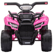The Electric 4 Wheeler ATV Ride-On Toy for Toddlers (Ages 1-3) - Powered by 6V Battery is the perfect adventure companion for your little ones. With its innovative design and vibrant color scheme, this ride-on electric car will capture the attention of children and spark their imagination. Whether they're cruising on sidewalks or exploring gravel driveways, the four wear-resistant wheels ensure a smooth and thrilling ride. Encourage outdoor play and let your child's inner adventurer roam free with this electric ATV ride-on toy.Key Features:- Working headlights for an authentic riding experience on the electric ATV- Powerful rear-wheel drive with 6V motors- Pedal-powered for an interactive and engaging playtime- Maximum speed of 1.24mph, providing a safe and exciting ride- High-quality rechargeable battery and charger included in the package- 45 minutes of continuous playtime once fully charged- Four wide textured tires for a smooth and stable ride- Recommended for kids aged 18-36 months under adult supervision- Develops hand-eye coordination and motor skills while playing- Assembly required for a fun and interactive building experienceSpecifications:- Color: Pink- Material: Steel, PP (Polypropylene)- Overall Dimension: 26"L x 17.25"W x 16.5"H- Seat Size: 11.5"L x 5.5"W x 10.25"H- Wheel Size: ?7" (7 inches)- Charging Time: 8-12 hours- Use Time: 45 minutes (depending on the intensity of use)- Battery: 6V, 4AH- Maximum Speed: 1.24mph- Recommended Ages: 18-36 months old- Weight Capacity: 44 lbs- Certification: ASTM F963-17, CPSIALet your child embark on thrilling adventures with the Electric 4 Wheeler ATV Ride-On Toy for Toddlers (Ages 1-3). Order now and let the fun begin!