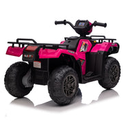 The Electric 4-Wheeler Quad for Kids with MP3 and Headlights - 2 Speeds, Pink is the ideal toy to accompany your children on their outdoor adventures. Crafted with high quality non-toxic PP materials and certified by ASTM & CPSIA, this battery powered quad ATV is both safe and durable. It's the perfect Christmas or birthday gift for boys and girls, creating cherished childhood memories.With its advanced slow start system, this ride-on ATV ensures a smooth and gentle start, protecting your kids from any sudden jolts. The wide seat provides optimal comfort, fitting well with your child's body shape. They'll feel like a real adventurer as they ride around in style.Equipped with a powerful 2X30W motor, this 4-Wheeler offers strong and stable power in any condition. It has a fast speed of 2.5MPH, providing thrilling rides for your little ones. The rechargeable 12V battery provides up to 2 hours of continuous playtime on a single charge, ensuring lasting enjoyment for your kids.The anti-slip and wear-resistant wheels allow your children to ride on nearly any terrain, whether it's the beach, rubber track, or cement road. Indoors or outdoors, they can have fun wherever they want. The spring suspension and 4 large diameter wheels provide great stability and support for your toddlers.This multi-functional ride-on toy features a realistic outlook, mimicking a real beach ATV with fantastic details. It has three cool LED headlights on the front, illuminating the road ahead at night for an authentic experience. The MP3, USB, and AUX port allow children to choose their favorite songs and music, adding to the fun.Specifications:- Color: Pink- Recommended Age: 3-6 years- Material: PP and ABS plastic, Metal- Battery Type: 12V 4.5AH- Motor Type: 30W*2- Suspension: Spring Suspension- Maximum User Weight: 60lbs- Safe Speed: 1.5-2.5mph- Charging Time: 8-12 hours- Run Time: 1-2 hours- Music Function: AUX & USB port / Built-in music- Overall Size: 34 inches (L) x 18.11 inches (W) x 19.69 inches (H)- Certification: ASTM F963, CPSIAThis ATV is suitable for riding on any terrain, allowing your child to have a great time exploring outdoor roads and experiencing the joy of driving. It's easy to drive, making it suitable for toddlers aged 3-6. Your little driver will be able to handle it with ease.The adjustable speed feature allows your child to choose between low or high speed, depending on the terrain. It has a speed range of 1.5-2.5 mph, giving them the flexibility to ride at their desired pace.Let your child embark on exciting adventures with the Electric 4-Wheeler Quad for Kids with MP3 and Headlights - 2 Speeds, Pink. It's a ride-on toy that combines fun, safety, and style, providing endless entertainment for your little ones.