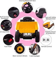Electric Excavator Truck for Kids with 3 Speeds and Music - 12V Battery Powered Digger Ride-On