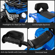 The Electric Kids Ride on Beach ATV Truck with Music and Lights - 12V Rechargeable Toy is a thrilling and adventurous ride-on car that will bring endless joy to your little ones. Designed for kids ages 3 to 6, this electric car is the perfect gift for birthdays and Christmas. With its realistic features including LED headlights, engine acceleration sounds, and horn sounds, your child will have an immersive driving experience like no other.This kids ATV is easy to operate with just one button to start the car. Your child can take control of the wheel and feel the excitement of driving with the foot pedal accelerator. With high and low-speed selections and a maximum speed of 3.7 mph, your child can enjoy a thrilling ride while still being safe. The backward function allows for easy maneuvering and ensures that your child can navigate any obstacle with ease.Safety is our top priority, and this ride-on car is built to last. The high-quality body materials are ASTM F-963 and CPSIA qualified, ensuring that the car will not crack, bend, or break during normal riding. The 12V 7AH rechargeable battery and charger are also UL certified, guaranteeing a long-lasting and reliable power source. Simply connect the car to the charger included in the package for easy recharging.This toy four-wheeler is equipped with four wear-resistant tread wheels and dual 550#12000 motors, allowing your child to drive on all terrains safely. Whether it's grass, concrete road, wood floors, asphalt floors, or a plastic runway, your child can have fun indoors or outdoors, anytime and anywhere. The front basket storage adds convenience, allowing your child to bring snacks, tiny toys, or cartoon books along for the ride.Specifications:- Color: Blue/Black- Product Size: 39.5 x 24 x 28.3 inches- Net Weight: 35 lbs- Load Capacity: 66 lbs- Motor: Dual powerful motor- Battery Type: 12V 7AH- Charging Time: 8-12 hours- Riding Time: About 40 minutes- Recommended Ages: 3-6 years oldPackage Includes:- 1 x Kids Ride on ATV- 1 x Charger- 1 x Product Manual- 1 x Audio CableGet ready to embark on thrilling adventures with The Electric Kids Ride on Beach ATV Truck with Music and Lights - 12V Rechargeable Toy. Order now and let your child's imagination run wild!