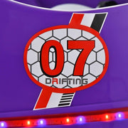 The Electric Kids Ride On Bumper Car with Flashing Lights and Remote Control - Perfect Toddler Toy Gift is the ultimate ride-on toy for your little one. With its vibrant purple color and exquisite stickers, this bumper car is sure to catch your child's attention. It is made from durable PP and metal materials, ensuring long-term use and enjoyment.This bumper car offers two different ways to control. Your child can manually operate the car using the dual joysticks, allowing them to move forward or backward. For added safety and convenience, parents can also control the car using the remote control. This feature ensures that your child can have a safe and enjoyable ride at all times.Entertainment is guaranteed with the built-in music and horn. Your little one will be delighted as they ride around, accompanied by fun tunes and sounds. The colorful flashing lights add an extra element of excitement, making this bumper car even more attractive for both boys and girls aged 2-5 years old.Safety is a top priority with this remote control ride on toy. It is designed with multiple safety features to protect your child. The adjustable safety belt securely holds your little one in place, preventing any falls. The soft bumper design ensures safe collisions, while the slow start function prevents sudden acceleration. Rest assured, this bumper car has passed ASTM and CPSIA certifications for added peace of mind.Not only is this bumper car fun, but it also helps your child develop their motor skills. As they ride, bump, race, and spin, they will exercise their hands-on ability and fine motor skills. The spacious pedal area allows your child to place their feet comfortably, ensuring a smooth and effortless riding experience.This bumper car is equipped with four smooth and flexible wheels. The two driving wheels allow your child to ride on different flat roads, such as wood floors, cement roads, or brick roads. The two 360° spin universal wheels guarantee flexible steering and swiveling in all directions, providing your child with an exciting spinning experience.With a maximum speed of 1.3 mph, this bumper car ensures a safe and enjoyable ride for your child. It is suitable for kids aged 2-5 years old and can support a maximum weight of 44 lbs. The product dimensions are 22.5" x 29.5" x 16.5" (L x W x H), and the seat size is 12.5" x 8.5" (L x W). The bumper car comes with a 12V 4.5A battery and a charger, with a charging time of 8-12 hours.In summary, the Electric Kids Ride On Bumper Car with Flashing Lights and Remote Control - Perfect Toddler Toy Gift is a must-have for any adventurous child. With its various entertainment features, multiple safety protections, and smooth and flexible wheels, this bumper car guarantees endless fun and excitement. Get ready for your child to have a thrilling ride-on experience like no other.