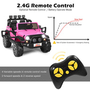 The Electric Kids Ride On Car with Remote Control and Music - Pink with Storage Box Are you tired of your kids spending all day watching TV or playing computer games? Our Electric Kids Ride On Car with Remote Control and Music - Pink with Storage Box is the perfect solution to keep your kids active and entertained. With its realistic and cool appearance, this ride-on car will capture your child's attention immediately. It comes with two modes of operation, allowing you to control the car with the included 2.4G remote control or let your child operate it independently. Made of premium PP and Iron materials, this car has passed ASTM certification, ensuring a safe and comfortable driving experience for your little ones. Key Features: Equipped with a front engine box and a back box to store snacks and toys, providing convenience during playtime. Realistic design with LED lights and horn sound, adding to the overall appeal and style of the car. Slow start function for gradual acceleration and reliable braking, ensuring a smooth and safe ride for your child. Doors that can be opened and locked, adding an extra element of fun and convenience to the remote control ride on experience. Product Specifications: Color: Pink Material: PP + Iron Overall Dimension: 48.5" x 31.5" x 31.5" (L x W x H) Speed: 2.5-4 km/h Battery: 12V 7AH Charging Output: 15V 1000MA Net Weight: 52 lbs Weight Capacity: 110 lbs Suitable Age: 3-8 years Package includes: 1 x Ride On Car 1 x Remote Control 1 x Charger 1 x User Manual