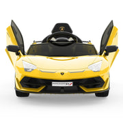The Electric Kids Ride On Sports Car with Remote Control, Music, and LED Lights - Perfect Gift for Kids! is the ultimate toy for your little racers who want to experience the thrill of driving like the grownups do! This ride-on car is small yet powerful, designed to provide an authentic driving experience for children up to 3 years old. With true-to-life pedals and a steering wheel, kids can have hands-on control just like in a real car. The mini truck is equipped with a safety harness and locking doors for added realism and safety.But the fun doesn't stop there! If you want to join in on the excitement, take advantage of the remote control feature. Stand back and watch as your kids navigate their way through playtime, or take control and join them for a thrilling ride. The rc ride on car also features a Bluetooth dashboard, allowing you to connect your favorite devices and add a soundtrack to playtime. Let your kids cruise in style with the built-in music and story, or play their own tunes through the AUX cord, TF port, or USB port.This officially licensed ride-on car is designed to resemble a real Lamborghini, complete with LED headlights, horn and engine sounds, and hydraulic powered doors that swing open just like the real thing. The battery charging time is 8-12 hours, ensuring your kids have plenty of time to enjoy their ride-on car.With two driving modes, this ride-on car offers flexibility for both parents and kids. Parents can take control with the remote control feature, which allows for 3 speeds shifting. This is especially useful for younger kids who may need assistance. Older kids can operate the car themselves using the foot pedal and steering wheel, with 2 speeds shifting.Safety is always a top priority. The ride-on car is powered by 2 powerful 25W motors and 12V rechargeable batteries, providing a safe and thrilling ride for up to 1-2 hours. The car can reach speeds of 1.86-3.12 mph, ensuring a fun and exciting experience for your little ones. The ride-on car is made of safe materials and is certified with ASTM and CPSIA, giving you peace of mind.The Electric Kids Ride On Sports Car with Remote Control, Music, and LED Lights is not only a toy, but also a gift that can enrich your little one's life and enhance the parent-child relationship. It comes in a variety of colors including Red, White, Green, and Yellow, allowing your kids to choose their favorite. The car measures 42.32 inches in length, 24.8 inches in width, and 16.54 inches in height. It is suitable for children aged 3-8 years old, with a maximum weight capacity of 66 lbs.Get ready to ignite your child's imagination and let them embark on thrilling adventures with the Electric Kids Ride On Sports Car with Remote Control, Music, and LED Lights. It's the perfect gift for birthdays or Christmas, guaranteed to bring joy and excitement to your children or grandchildren.Product Specifications:- Color: Red/White/Green/Yellow- Material: PP, Iron- Car Size: 42.32in Lx24.8in Wx16.54in H- Battery: 12Vx1, 4.5Ah- Motor: 25Wx2- Charger: 8-12h- Speed: 1.86-3.12mph- Suitable Age: 3-8 yrs- Maximum Weight: 66lbsPackage Includes:- 1x Ride on Car- 1x Remote Control- 1x Charger- 1x User Manual