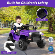 Electric Kids Ride On Truck Car with Remote Control and 3-Speeds - Purple with Headlights
