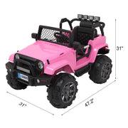 The Electric Pink Ride-On Car for Kids with Remote Control and LED Lights is the perfect toy for adventurous children aged 3 to 8 years old. This ride-on car offers a thrilling and safe experience for your little one, with its easy assembly and 2.4g remote control. With 3 different speed modes, your child can cruise around at their own pace.This remote control ride on car is not just fun, but also packed with exciting features. It has LED headlights, a horn, and an easy start/stop button for added convenience. Your child can also connect their portable devices to play their favorite music or stories through the built-in mp3 player, radio, USB port, and TF card slot. The ride-on car supports mp3 format, ensuring endless entertainment options.Designed for a smooth and comfortable ride, this car is equipped with 4 wheels with spring suspension. This feature guarantees a super smooth ride, even on bumpy surfaces. The ride-on car also has an automatic reset fuse for protection circuit, ensuring the safety of your child during playtime.The car is powered by a rechargeable 12V battery, which comes with a charger for hours of playtime. Parents have the option to let their child drive manually or use the remote control to safely guide them when necessary. The included remote control has 3 speed modes, parking mode, and forward/reverse functionality, making it easy to control the car and ensure your child's safety.Safety is a top priority, which is why this ride-on car is equipped with an adjustable seat belt. This ensures that your child can ride in comfort and safety. The seat width is 15.8 inches and the seat depth is 8.7 inches, providing a cozy and secure seating experience.In terms of specifications, this Electric Pink Ride-On Car has a maximum user weight of 66lb or 30kg. It can reach a speed of 3-6 KM/H (3.7mph max) and has a charge time of 8-12 hours. The run time is approximately 1-2 hours, depending on the child's weight and speed. The wheels have a diameter of 14 inches each.The battery type is 12V 7AH, and the controller requires 2 AAA batteries (not included). The overall dimensions of the ride-on car are (47.2 x 31 x 31)" / (119.89 x 78.74 x 78.74)cm (L x W x H).Package Includes:- 1 x Electric Car- 1 x 2.4G Remote Control- 1 x Charger- 1 x ManualLet your child embark on exciting adventures with the Electric Pink Ride-On Car for Kids with Remote Control and LED Lights. With its vibrant pink color and thrilling features, this ride-on car is sure to bring joy and excitement to your child's playtime.