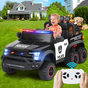 Electric Police Car Ride-On for Kids with 6 Wheels, LED Lights, Intercom, Siren, and Remote Control