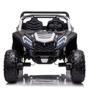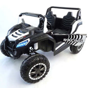 Product Description Electric Ride-On Car for Kids - 2 Seater ATV Buggy with 240W Motor and 24V Battery - Remote Control Included The Electric Ride-On Car for Kids - 2 Seater ATV Buggy with 240W Motor and 24V Battery - Remote Control Included is the ultimate action-packed electric ride for active children! Get ready for thrilling adventures with this one-of-a-kind 4 wheel ATV Buggy Car. With its powerful 240W motor and 24V battery, this ride-on car provides an exhilarating experience for kids aged 3-6 years. Key Features: Brand: ToyStar Power Type: Electric Body Type: Children’s Color: White Theme: Cars Recommended Age Range: 3-6 Gender: Boys & Girls Accessories Included: Battery(ies) Product Specifications: Size: 52” x 35” x 22” Max Load: 130 lb. (59 kg) 2 leather seats (22" total width) - kids 3-4 years old ride together, kids 5-6 years old ride alone Multimedia MP4 screen – you can upload your favorite music, pictures, karaoke and control them from the screen Anti-skid rubber wheels and suspension for more comfort during off-road driving 15" explosion-proof EVA rubber tires STOP button to easily stop the toy within 50-70 ft 3 Speed: low / fast / superfast - up to 3.5 mph (5 km/h) (4) Motors – 240 Watts total (1) 24V Battery LED headlights Seat belt to make the ride safer Horn Sound Charging time: 8-12 hours Travel time: up to 1 hour, depends upon usage Parents are always in control of the Electric Ride-On Car for Kids. With the included 2.4 GHz remote control, parents can easily take over the car or divert it at any time. The push-button start adds to the excitement of the ride, while the ride-on car's electric pedal allows children to operate it independently. The STOP button ensures that the toy can be easily stopped within 50-70 ft for added safety. Designed with two leather seats, this ride-on car is perfect for kids aged 3-4 years old to ride together, or for kids aged 5-6 years old to ride alone. The spacious seats provide comfort and support during the thrilling adventures. The car's white color and Cars theme make it visually appealing to both boys and girls. Equipped with a multimedia MP4 screen, the Electric Ride-On Car allows you to upload your favorite music, pictures, and even karaoke. Control everything from the screen and create a personalized entertainment experience for your child. The anti-skid rubber wheels and suspension provide a smooth and comfortable off-road driving experience, while the 15" explosion-proof EVA rubber tires ensure durability and stability. Safety is a top priority with this ride-on car. The LED headlights enhance visibility, especially during low-light conditions. A seat belt is included to make the ride safer for your child. The horn sound adds a touch of realism and excitement to the adventure. With a charging time of 8-12 hours, the Electric Ride-On Car is ready for hours of fun after a full charge. The travel time can reach up to 1 hour, depending on usage. Let your child explore and create unforgettable memories with this thrilling ride-on car.