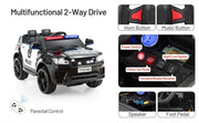 The Electric Ride On Car for Kids with 3 Speeds, Lights, Music & Remote Control - 12V Introducing the Electric Ride On Car for Kids with 3 Speeds, Lights, Music & Remote Control - 12V, a thrilling and adventurous ride-on toy that will bring endless joy to your little ones. This rc ride on car is designed to provide a safe and exhilarating experience for children aged 3 to 8 years old. With its realistic police car design, complete with siren, flashing lights, and police signs, your child will feel like a true hero as they zoom around in style. Key Features: Two Control Modes: This ride-on car offers two control modes for maximum flexibility. The Parental Remote Control Mode allows parents to effortlessly control the car using the provided remote control, promoting parent-child interaction. The Battery Operate Mode allows children to control the car freely using the steering wheel and foot pedal inside. Safe and Smooth Driving: With its slow start-up design, this ride-on car ensures a smooth and safe driving experience for your little one. The spacious seat comes with a safety belt, while the independent suspension system provides stability and comfort. Best Gift for Children: Make your child's dreams come true with this exquisite ride-on car. The realistic police car design, complete with headlights, music, microphone, and volume controller, will provide endless hours of fun and excitement. Easy to Use: This ride-on car is designed to be user-friendly. Your child can easily start the car with the push of a button and control its movement forward, backward, or stop. The speed can also be conveniently adjusted using the remote controller, with three speed options available. Additional Specifications: Brand: Costway Theme: Cars Material: PP, iron Recommended Age Range: 3-8 years old Overall Dimension: 43.5" x 27" x 21" (L x W x H) Age Level: 3-4 Years, 4-7 Net Weight: 27.5 lbs Weight Capacity: 66 lbs Speed Range: 1.8 to 3 mph (low, medium, high) Charge Time: 8-12 hours Operation Time: 1-2 hours Battery Type: Rechargeable 12V 4.5Ah Motor Type: 30W x 2 Charger Type: 12V 500mA Get ready for an unforgettable adventure with the Electric Ride On Car for Kids with 3 Speeds, Lights, Music & Remote Control - 12V. Order now and give your child the gift of endless fun and excitement!