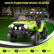 The Electric Ride-On Car for Kids with LED Lights, Music, and Remote Control - 3 Speed Options by Hikole is the perfect gift for your little ones. Whether it's for a birthday or a special occasion, this ride-on car will not only bring joy to your child's life but also nurture their driving dreams. With its exceptional features and attention to detail, this car delivers both style and performance, ensuring a safe and enjoyable driving experience.This rc ride on car offers two modes of driving. Parents can take control of the car using the remote control, or kids can drive it themselves using the steering wheel and pedal. The soft start feature ensures that there are no sudden accelerations or braking, providing a smooth and safe ride.But the fun doesn't stop there! This ride-on car is equipped with built-in music and supports USB and Bluetooth connections, allowing your child to enjoy their favorite tunes while cruising around. The car also features a digital electricity display, adjustable speed settings (high and low speed, with 3 speeds on the remote control), and multimedia functions such as a horn and music.Designed with a cool and sleek look, this ride-on car features a windshield, LED lights, lockable doors, a high-simulated steering wheel, and a foot pedal. It is made from premium PP and iron frame, ensuring its durability and sturdiness for long-lasting use. Rest assured, this car is certified by ASTM and CPSIA, meeting the highest safety standards.The package includes the ride-on car, a 2.4G remote control, a charger, an instruction manual, and an aux cable. The car is powered by a DC 12V 4.5AH battery and has two 30W motors. It has a speed range of 1.86-3.1 mph and a charging time of 8-12 hours. The car's dimensions are 39.37"(L) x 25.6"(W) x 28.34"(H), with a seat size of 15 inches.This Hikole ride-on car is suitable for children aged 37-95 months and has a recommended load capacity of under 66 lbs. It adapts to multiple terrains, including floors, cobblestone roads, grass, and asphalt, thanks to its four wear-resistant wheels and rear suspension system, which reduces the feeling of bumps and enhances the driving experience.With its cool design, advanced features, and sturdy construction, the Electric Ride-On Car for Kids with LED Lights, Music, and Remote Control - 3 Speed Options by Hikole is the ultimate choice for your child's next adventure. Let their imagination run wild as they embark on unforgettable journeys with this ride-on car. Order yours today and bring happiness and joy to your little one!