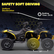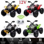 The Electric Ride-On Car for Kids with LED Lights, Music, and Wide Seat - Perfect Gift for Playtime Fun! is the ultimate toy for your little adventurer. With its powerful 12V/2X35W motor and 7AH big battery, this ride-on car provides a stable and thrilling driving experience for children aged 3-11 years. The fast speed of up to 5MPH (8KM/H) ensures that your child can have a fun and exciting ride while staying safe.Safety is a top priority with this ride-on car. It features a soft braking system that ensures smooth and safe stops, even during emergency situations. The suspension system on all four wheels provides excellent shock absorption, reducing the impact of bumps on rough terrain. Your child will have a comfortable and secure ride every time.But the fun doesn't stop there! This ride-on car also offers various entertainment functions to keep your child entertained. It has built-in stories and music, and can even connect to a mobile phone to play their favorite tunes. The headlights are bright enough to illuminate the way in darkness, adding to the excitement of the ride. The power display reminds you to charge the car in time for the next adventure.No terrain is off-limits with this ride-on car. Equipped with wear-resistant wheels, it can conquer any surface, from the beach to a cement road. The large diameter of the wheels ensures stability, allowing your child to ride with confidence. Whether indoors or outdoors, this ride-on car will provide endless fun for your little one.Specifications:- Motor: 12V 2X35W- Battery: 12V7AH- Speed: 3-8KM/H- Overall size: 42.5 x 25.2 x 28.3 inches (L x W x H)- Wheel diameter: 12.2 inches- Maximum Load: 66LBS (30KG)- Playtime: 1-2 hours- Charging time: 8-10 hours- Other Functions: LED Lights, RadioThis ride-on car also offers additional features to enhance the overall experience. It has a slow start function that protects your child during manual driving, preventing any sudden movements that may scare them. The wide seat provides optimal comfort, ensuring that your child can enjoy their ride for hours on end.Transportation is made easy with the Easy-Drag 4WD technology. The front-wheel motor automatically powers off when the car is turned off, allowing you to easily tow the car with the handle. Say goodbye to the hassle of transporting 4WD vehicles.This battery-powered quad ATV is the ideal toy to accompany your children on their adventures. It makes for a perfect birthday gift that will create cherished childhood memories. Rest assured, this ride-on car is crafted with high-quality materials and is certified by ASTM/CPSIA for your peace of mind.Let your child's imagination run wild with the Electric Ride-On Car for Kids with LED Lights, Music, and Wide Seat. Get ready for endless hours of fun and excitement!
