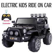 Electric Ride On Car for Kids with Remote Control, Music, and Light - Black Introducing the LEADZM lZ-12 Dual Drive, a remote control power car that will ignite your child's imagination and provide endless hours of fun. With its sleek black design, LED headlights, and built-in horn, this ride-on car allows children to experience the thrill of driving for the first time. Whether they're cruising around the backyard or exploring the neighborhood, kids can drive freely on their own or parents can use the remote control to safely guide them when necessary. But the fun doesn't stop there. This rc ride on car also features a music function that allows kids to play their favorite tunes and stories through the provided AUX cord or USB. With the easy start or stop button, LED headlights, and a horn, your child will feel like a real driver behind the wheel. The 2.4g remote control provides forward, backward, and parking functions, making it easy for parents to control the car and ensure their child's safety. Assembly is a breeze, and the automatic reset fuse provides protection for the circuit. The car offers different speed modes, allowing kids to choose their preferred level of excitement. The adjustable seat belt ensures a safe and comfortable ride for children aged 3 to 8 years old. This ride-on car is the perfect gift for any young adventurer. Key Features: Easy to assemble Automatic reset fuse for protection circuit Different speed modes LED headlights, a horn, and easy start or stop button Able to connect your device by USB or AUX cord to play music and stories 2.4g remote control with 3 speed modes, parking mode, and forward and reverse functionality Adjustable seat belt for safe and comfortable use Specifications: Color: Black Battery Type: 12V 7Ah Charge Time: 8-12 Hrs Run Time: 1-2 hours (Depend on kids weight and speed) Maximum Speed: 4 mph Maximum User Weight: 110 lbs Remote Control: 2*AAA battery (Not Included) Music Function: AUX/USB/TF Card (USB Flash Drive/Mobile Phone etc.) Overall Dimensions: 49.21" x 31.50" x 31.50" (L x W x H) Package Included: 1 x Electric Car 1 x 2.4g Remote Control 1 x Charger 1 x Manual Please note that this toy car is delivered in two different packages, which may not be delivered at the same time. If you only receive one of the packages, please wait another 1-2 days. For installation assistance, please contact our customer service for the installation video before installation.