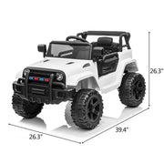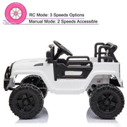 The Electric Ride-On Car Truck for Kids with MP3, LED Lights, and Remote Control - 3 Speed Options is an amazing electric car that is the perfect choice for your child. This car is ASTM-certified and made with high-quality materials, ensuring safety and durability for your child's playtime adventures. Whether your child wants to drive manually or you prefer to use the remote control for added guidance, this ride-on car provides a safe and enjoyable experience. Key Features:- ASTM-certified and easy to assemble- Built-in horn and LED lights for added fun and excitement- Equipped with an MP3 player, radio, and USB port for music enjoyment- Supports MP3 format for versatile music options- 4 wheels with spring suspension ensure a super smooth ride- Automatic reset fuse for protection circuit- Rechargeable 12V battery with included charger for hours of playtime- 2.4G remote control with 3 different speed modes, parking mode, and forward/reverse functionality- Easy to control for both parents and children, ensuring safety during playtime- Adjustable seat belt for safe and comfortable use- Recommended for children aged 3 to 6 years oldProduct Specifications:- Color options: Pink, Red, White, Black- Material: PP Plastic, Metal- Seat Width: 12.8 inches- Seat Depth: 7.5 inches- RC Mode: 3 Speed Options- Manual Mode: 2 Speeds Accessible- Maximum User Weight: 62 Lbs (28kg)- Speed: 2-4 KM/H (2.5 mph max)- Charge Time: 8-12 Hrs- Run Time: 1-2 Hrs (Depends on kids weight and speed)- Wheels: 11 inches in diameter each- Battery Type: 12V 7Ah- Controller Battery: 2 x AAA Batteries (not included)- Overall Dimensions: 39.4"(L) x 26.3"(W) x 26.3"(H)- Recommended for Ages: 3-6 yearsPackage Includes:- 1 x Electric Car- 1 x 2.4G Remote Control- 1 x Charger- 1 x ManualWith its attractive design and exciting features, this Electric Ride-On Car Truck is sure to provide endless hours of fun and adventure for your child. Let their imagination run wild as they explore the neighborhood in their very own remote control ride on car. Don't miss out on this must-have toy for your little one's playtime enjoyment!