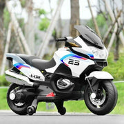 Electric Ride-On Motorcycle for Kids with Training Wheels and Lights - White
