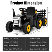 Electric Ride-On Tractor with Trailer and Remote Control - Black
