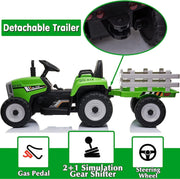 The Electric Ride-On Tractor with Trailer and Remote Control for Kids - 12V Vehicle Toy is not just your ordinary ride-on toy. It offers a realistic driving experience that will make your little one feel like they're actually driving a tractor. With the push of a button, they can drive this electric remote control ride on car forward at two different speeds and even steer it backward at a low speed. The car features 7 LED headlights, a foot pedal, a horn, a solid armrest, and a shift knob, all of which add to the driving fun for your children.But that's not all! This electric car for kids also comes with a built-in horn and audio system. It has preset sounds and cool horn sounds that will give your little one even more recreational functions. They can also connect their phone or use a USB card through the USB port to play their favorite music or stories. The volume is adjustable, so you can control the sound level. With a high-quality 12V 4.5AH battery, the tractor ride-on toy car can run for an impressive 40-50 minutes after a full charge.Safety is always a top priority, and this ride-on tractor takes that into consideration. It is designed with an adjustable safety belt and armrests beside the wide seat, providing a safer and smoother driving experience. It also comes with a parent remote control, allowing you to join in on the fun and ensure your child's safety. Of course, your child can also drive the ride-on tractor by themselves using the foot pedal and steering wheel.One of the standout features of this ride-on tractor is its large detachable trailer. This allows children to transport toys, tools, garden supplies, flowers, straw, and snacks in the backyard and garden, adding even more driving fun to their playtime. The trailer is easy to remove, so you can take it on a wild ride in the farm if needed. Just remember not to transport people in the trailer for safety reasons.This ride-on tractor is not just fun, but it also offers high performance. It is equipped with a large high-quality 12V rechargeable battery and two powerful 25W motors. The wear-resistant and non-slip wheels ensure that the tractor can go fast, even on complex terrains such as dirt, grass, and gravel roads. It has a maximum load capacity of 66lbs and can reach speeds of 2-5mph.Here are the specifications of the Electric Ride-On Tractor with Trailer and Remote Control for Kids - 12V Vehicle Toy:- Brand: Dazone- Running Time: 40-50 mins- Theme: Cars- Recommended Age Range: 3-8 years- Main material: PP(polypropylene) and iron- Age Level: 3-4 Years, 5-7 Years- Motor: 25W X 2- Charging Time: 8-12 hours- Battery: 12V 4.5AH*1- Weight Capacity: 66lbs/30kg- Over dimensions: 54 x 20 x 21 inchesWith its realistic driving experience, built-in horn and audio system, safety measures, large detachable trailer, and high performance, the Electric Ride-On Tractor with Trailer and Remote Control for Kids - 12V Vehicle Toy is the ultimate ride-on toy for your little one. Let their imagination run wild as they embark on exciting adventures with this amazing toy.