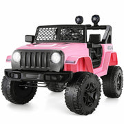 The Electric Ride-On Truck for Kids with Remote Control, LED Lights, and 3 Speed Options is the ultimate toy for adventurous children. This ride-on truck is designed to provide a thrilling and safe experience for kids aged 3-5 years. With its sleek design and vibrant colors, it is sure to capture the imagination of any child.Key Features:- Safe Two-point Seat Belt: The remote control ride on truck is equipped with a two-point safety belt to ensure that children are securely strapped in while enjoying their ride.- Large Textured Tires: The large shock-absorbing plastic tires feature anti-skid patterns, making them wear-resistant and explosion-proof. These tires enhance grip and allow the truck to smoothly pass through various terrains.- Multifunctional Panel: The truck is equipped with a multifunctional panel that includes an AUX input, USB port, and Bluetooth function. This allows children to connect their devices and play their favorite music or stories while riding.Specifications:- Material: PP Plastic + Metal- Load Capacity: 66.13 lbs- Max Speed: 1.9-2.6 mph- Charge Time: 8-12 hrs- Battery Type: 12V 7Ah- Electric Motor: 4 motors power- Recommended Age: 3-5 Years- Overall Dimensions: 41.9"(W) x 28.2"(D) x 28.1"(H)The ride-on truck comes with a 2.4GHz remote control, allowing parents to have full control over the truck's movements. The remote control features forward and reverse controls, as well as speed selection. This ensures that parents can safely guide their child's ride.In addition to its impressive features, the ride-on truck also boasts cool LED lights, adding a touch of excitement to nighttime adventures. The truck also features a retractable handle, making it easy to carry and transport.With its 12V 7Ah battery, the ride-on truck provides hours of playtime. It comes with a charger, allowing for convenient recharging when needed. The adjustable seat belt ensures that children can ride in comfort and safety.The package includes the ride-on truck, a 2.4G remote control, a charger, and an instruction manual. The truck is available in four vibrant colors: Black, White, Red, and Pink. Its overall dimensions are 38.5" (L) x 23.5" (W) x 26" (H), with a weight capacity of 76 lbs.Overall, the Electric Ride-On Truck for Kids with Remote Control, LED Lights, and 3 Speed Options is the perfect gift for children aged 3-5 years. It not only provides endless fun and adventure but also enhances their motor skills and imagination. Let your child's driving dreams come true with this incredible ride-on truck.