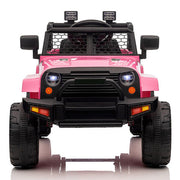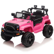 Product Description The Electric Toy Jeep for Kids with LED Lights, MP3 Player, and Remote Control - Perfect Gift for Young Drivers! Introducing the Electric Toy Jeep for Kids with LED Lights, MP3 Player, and Remote Control - the perfect rc ride on toy for young drivers! This Astm-certified toy is made with high-quality material, ensuring both safety and durability. Whether your child wants to drive manually or you prefer to use the remote control for added guidance, this toy will provide an exciting and realistic driving experience. The adjustable seat belt guarantees a safe and comfortable ride, making it the best choice for your child's playtime adventures. Key Features: 12V ride on car designed with a wider seat and adjustable seat belts for safety and comfort Equipped with an electronic horn, LED lights, and an FM radio with MP3 input for added fun 2.4G remote control with 3 different speed modes, parking mode, and forward/reverse functionality Durably crafted with PP plastic and a tough metal frame to withstand years of use Product Specifications: Color: Pink Material: PP Plastic, Metal RC Mode: 3 Speeds Options Manual Mode: 2 Speeds Accessible Max User Weight: 62 Lbs (28kg) Max Speed: 2.8 mph Charge Time: 8-12 Hrs. Run Time: 1-2 Hrs. Battery Type: 12V Controller Battery: 2 x AAA Batteries (not included) Dimensions: 38.7"(L) x 25.9"(W) x 25.6"(H) Recommended for Ages: 3-5 years Package Included: 1 x Electric Car 1 x 2.4G Remote Control 1 x Charger 1 x Manual