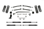 This Trail system provides enhanced suspension performance to address all variants of off highway travel use including rock crawling, aggressive trail use and overland expeditions. On road, the suspension has been tuned with proper dual rate coil springs and shock valving to provide a very compliant ride that you will appreciate. The system is a complete short arm suspension that utilizes the factory control arm mounts for an easy installation. The Fabtech heavy duty link arms are constructed of 1.75? OD. .250? thick wall steel tubing that are guaranteed never to bend. They come with large poly urethane bushings on one end with internal threads on the other to accept the ground breaking Fabtech 5 Ton Joint? for longevity and a quiet ride. Fabtech?s long travel Dual Rate coil Springs are corner specific to the JL. This keeps the vehicle level side to side and allows for increased suspension travel. The first stage of the spring provides a soft ride with the ability to extend for additional travel. The second stage is designed to handle the payload of the vehicle and address large impact absorption at higher speeds. To address the steering geometry with the increased ride height, a Draglink Flip System along with a heavy duty Track Bar bracket is included. This relocates the steering geometry to the factory plane allowing for full articulation without binding the draglink ends in extreme conditions. The factory angle of the draglink to the pitman arm does not change and there is no increased side load on the steering box sector shaft as compared to using a dropped pitman arm. This helps extends the life of the steering box with the increased ride height. The heavy duty rear Track Bar bracket with side support maintains the factory roll center of the vehicle while centering the axle. Front and rear bumps stop extensions protect the suspension from over cycling. Each Fabtech component has been designed with specific features and benefits that create this quality s