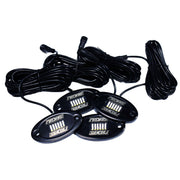 THE FIREWIRE RGBW ROCK LIGHT IS A BLACK POWDER COATED ALUMINUM PUCK STYLE LIGHT. THIS LIGHT IS COMPLETELY SUBMERSIBLE AND EXTREMELY RUGGED FOR EVEN THE MOST EXTREME ENVIRONMENTS. EACH LIGHT HAS 24 - 1 WATT CREE LED DIODES WITH A POLY CARBONATE COVER FOR PROTECTION AND COMES WITH A 15' LEAD WIRE.