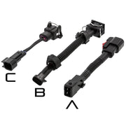 These plug and play injector connectors will make it easy to adapt your fuel injector harness over to another style plug without needing to cut and solder any wires.