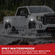 RECON LED Fender Lens Lights are built to last, made from military-grade reinforced ABS plastic with impact-resistant housing. They boast an IP67 waterproof rating, ensuring protection against dust, dirt, water, and snow, and are UV-treated to guard against direct sunlight exposure, ensuring long term reliability and durability for years to come.