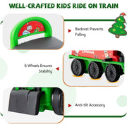 Not only can this train toy be used indoors, but it can also be enjoyed on flat outdoor grounds. Your children can place their feet on the retractable foot pedals for added comfort while riding. There's even a hidden storage box under the seat where they can store their beloved toys or snacks when going out. Safety is a top priority, which is why this train set is equipped with a backrest and anti-tilt accessory to prevent unexpected rollovers.