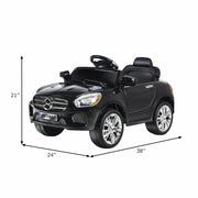 The HoneyJoy 6V Kids Ride On Car with RC Remote Control, Battery Powered and LED Lights is available in a sleek and stylish black color. Made from durable plastic material, this ride-on car is designed to withstand the adventures of young drivers. With a size of 24" (L) x 38" (W) x 21" (H), it provides plenty of room for your child to comfortably ride and play. This rc ride on car has a weight capacity of up to 44 lbs, making it suitable for children of various sizes. It is powered by a 6V 4AH battery, which provides a speed range of 2.4-3.1 km/h. The included charger allows for convenient and easy charging, with a charging period of 8-12 hours each time. The HoneyJoy 6V Kids Ride On Car also comes with a remote controller, allowing parents to take control and steer the car if needed. The remote controller requires 2 AA batteries (not included). With its LED lights, this ride-on car adds a touch of excitement and fun to your child's playtime. Whether they're driving around the backyard or cruising through the park, the LED lights will make them the center of attention. Key Features:- Sleek and stylish black color- Durable plastic material- Size: 24" (L) x 38" (W) x 21" (H)- Weight capacity: up to 44 lbs- Powered by a 6V 4AH battery- Speed range: 2.4-3.1 km/h- Remote controller included for parental control- LED lights for added excitement and visibilityProduct Specifications:- Brand: HoneyJoy- Color: Black- Material: Plastic- Size: 24" (L) x 38" (W) x 21" (H)- Type: Cars- Weight: 23 lbsExperience the thrill of the open road with the HoneyJoy 6V Kids Ride On Car with RC Remote Control, Battery Powered and LED Lights. Get ready for endless hours of fun and adventure as your child explores the world in their very own ride-on car.