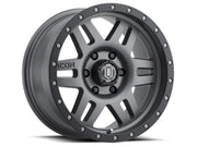 Shift into top gear with the ICON Alloys SIX SPEED! With a bold look and and "ICON-optimized" dimensions, these wheels will increase both the form and function of your Jeep, truck, or SUV. Staying true to the ICON Alloys approach, the SIX SPEED has been engineered to maximize caliper clearance and optimize wheel position for un-hindered suspension travel and steering function. Backspace dimensions and wheel offset have been strategically developed to reduce scrub radius, improving all-around handling and ride quality and making a set of these wheels the perfect complement to an ICON Vehicle Dynamics suspension system.
