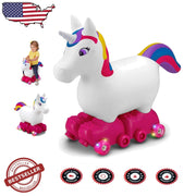 Inflatable Unicorn Ride-On Toy with Light-Up Roller Skates for Toddlers Ages 1-3