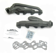 JBA shorty headers are one of the foremost performance upgrades you can bestow upon your beloved car, truck, or SUV. JBA Headers are significantly less restrictive than stock manifolds and dramatically increase the power and efficiency of your engine. Each header is constructed from durable stainless steel to endure the abuse of racing, towing, and daily driving – built to withstand it all. JBA’s proprietary Firecone collector design uses race proven technology for producing maximum power and torque gains where you drive most. Each system includes factory style emission connections and high-quality hardware for a professional no-leak installation.