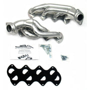 JBA shorty headers are one of the foremost performance upgrades you can bestow upon your beloved car, truck, or SUV. JBA Headers are significantly less restrictive than stock manifolds and dramatically increase the power and efficiency of your engine. Each header is constructed from durable stainless steel to endure the abuse of racing, towing, and daily driving – built to withstand it all. JBA’s proprietary Firecone collector design uses race proven technology for producing maximum power and torque gains where you drive most. Each system includes factory style emission connections and high-quality hardware for a professional no-leak installation.
