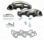 JBA shorty headers are one of the foremost performance upgrades you can bestow upon your beloved car, truck, or SUV. JBA Headers are significantly less restrictive than stock manifolds and dramatically increase the power and efficiency of your engine. Each header is constructed from durable stainless steel to endure the abuse of racing, towing, and daily driving – built to withstand it all. JBA’s proprietary Firecone collector design uses race proven technology for producing maximum power and torque gains where you drive most. Each system includes factory style emission connections and high-quality hardware for a professional no-leak installation.