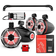 JL-TUBESOFT 4x 8" Marine Towers Speakers with RGB LED Lights, 4-Channel Marine Amplifier and AMPKIT for JLU Soft Top
